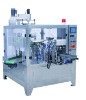 AutomaticPowder Packing Machine( Powder filling and sealing) Function and characteristics: 1.Easy to operate,adopt advanced PLC from Germany Siemens, mate with touch screen and electric control system, the man-machine interface is friendly. 2.Frequency conversion adjusts the speed: this machine uses frequency conversion equipment, can be adjusted within the range according to the needs of reality in production. 3.Automatic checking: no pouch or pouch open error, no fill, no seal. the bag can be used again, avoid wasting packing materials and raw materials. 4.Safty device: Machine stop at abnormal air pressure, heater disconnection alarm. 5.Horizontal conveyer style to giving bag: it can put on more bags on the bag storage and have a low requirement about the quality of bags. 6.Use the plastic bearing, dont need put on oil, less pollution. 7.Use no oil vacuum pump, avoid polluting the environment in the production. 8. huff,clamp the meatus of bag when put the windpipe into it, then huff to open up the bag fully to bottom in oder to avoid the material overflow from the bag if the it is not opend fully 9.The packing materials loss low, what this machine is used the preformed bag, the bag pattern is perfect and has a high quality of the sealing part, this improved the product specification 10.Product or packing bag contact parts adopt stainless steel or other materials which accord with the food hygienic requirements, guarantee hygiene and security of the food 11.With different feeders changed to pack solid, liquid, thick liquid ,powder and so on. 12.The packing bag suits in extensive range, suit for multi-layer compound, monolayer PE , PP and so on Preformed bag made by film and paper. Specifications: ModelGD8-200A Working positioneight-working position Pouch materialLaminated film Pouch patternStand-up, spout, flat Pouch sizeW:100-210mm L:100-350mm Speed≤35pouches/minThe speed depends on the product status and flling weight Weight1200KGS Voltage380V 3phase 50HZ/60HZ Total power2.8KW Compress air0.6m3/min(supply by user) Dimension2364(L)×1674(W)×1640(H) Producy process: 1.Giving bag 2.coding date 3.open bag 4.blowing bag (thickness of bottom>=1mm stand-up bag) 5.filling&vibrates 6.sealing 1st 7.sealing 2nd 8.forming & output packages. Samples: