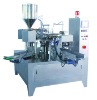 Paste and Liquid Rotary Packaging Machine Function and Characteristics: 1. Clip the bag, print codes, open bags, fill and vibrate bags, heat and seal bags, truing and output packages. 2. Adop imported button control. 3. The machine that adopts frequency governor to regulate the speed. 4. As the having printed & heat sealed package bag that the bag have a complete pattern, a good quality sealing and very low bag broken rate. 5. The shaping step is especially designed to keep the sealing from breaking, so the sealing is flat and smooth. 6. The machine adopts advanced plastic spraying technology, while the parts that contact the materials choose stainless steel. So with a good standard hygiene, anticorrosive and long service time. 7. According to the packing materials' demands, can choose automatic metering mechanism, automatic screw filling machine, intelligent function scale and other products suitable for automatically metering, which combined into an automatic assembly line (Also can pack through hand giving material). Scope of Application: wash, millet wine, soy sauce, vinegar, drink, fruit juice, tomato sauce, peanut butter, jam, chilli sauce, bean sauce etc. Specifications: Sepcialized in liquid and thick liquildScaling Scope: 5-1500g The style of Packaging bagPortable bag, Hand luggage, Zipper bag, Edging bag 4 side, Edging bag 3 sides, Paperbag Speed: 30pcks/min(max) Size of bag: 100-210mm(W)x 350mm(L) Total Power: 1.5kwprecision: 1g sample: